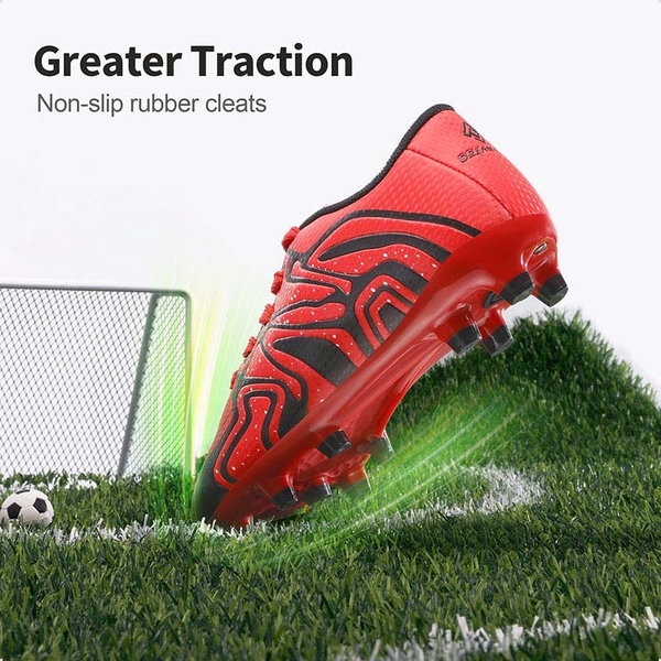Lend a hand on the field with complete dominance. What you need are kids' soccer cleats that get the job done. Supportive powerful play with a cushioned insole for added comfort. Rubber molded cleats with rotational traction configuration.