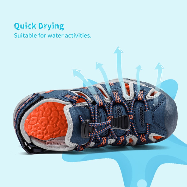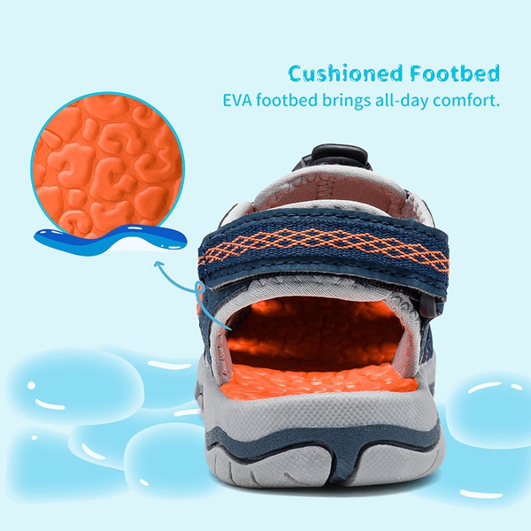 Get ready for adventure stories and durable footwear. Our boy's and girls' outdoor athletic sandals are the go-to looks this season. Being an athlete isn't easy but that doesn't mean breezy and fun adventures shouldn't be passed along. You've found the perfect companion for a vacation with family and friends. On the beach or at the lake. Our water-friendly insoles are durable and sturdy. Experience superior water ventilation. Off-the-charts traction and support. Bungee elastic lacing and hook-and-loop straps for easy adjustment and consistent relief.
