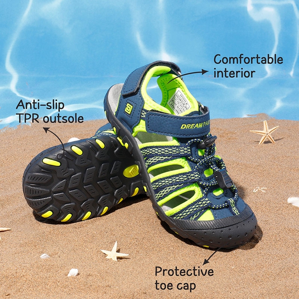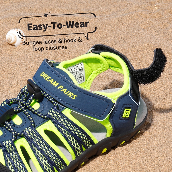 Ventilation and ease. Our kid's outdoor Sports sandals combine hook and loop strap and bungee elastic lacing. Lightweight and perfect. Venture towards a perfect water-driven adventure. Target a perfect vacation with our girl's and boys' sports sandals. Rubber outsole pad for added traction. Imported. Designed in the USA.