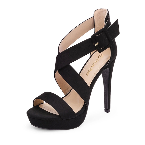 Elevate the occasion with these Dream Pairs women's open-toe strappy stiletto sandals. A suede sole pairs with a latex padded insole to deliver premium comfort. The PVC outsole is designed to be lightweight, while a crossed strap design and adjustable buckle make it easy to secure the perfect fit for you.