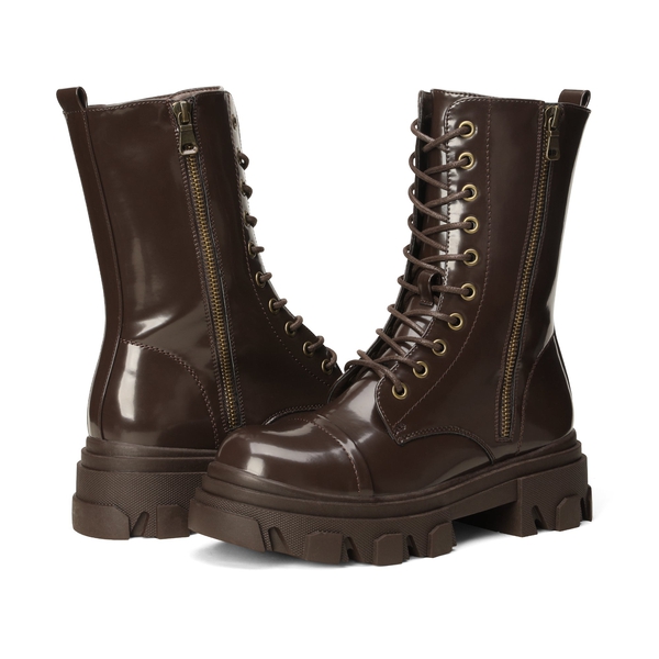 Boost your style with these Dream Pairs women's mid-calf combat boots. Built with a round toe and chunky platform for a stylish look. A zip closure makes putting on and taking off a simple affair, while a PU leather upper is easy to clean. Pair with anything – from dresses to skirts, to jeans.