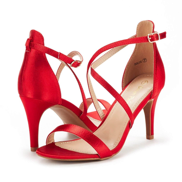Sexy, low, and sleek. These open-toe red stiletto sandals are the super-sleek version of the best day of your life. Low-key enough to dazzle the most in-impressionable and strong enough to last all night. This pop of color is waiting to come out and celebrate with you on the best night or day of your life. Pair these red stiletto sandals with a sexy long evening dress, or keep it chic and slick with a short party dress. Revel in the supportive 3-inch heel and supportive rubber outsole for incredible stability and support.