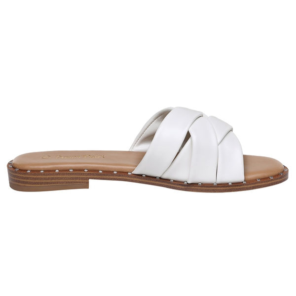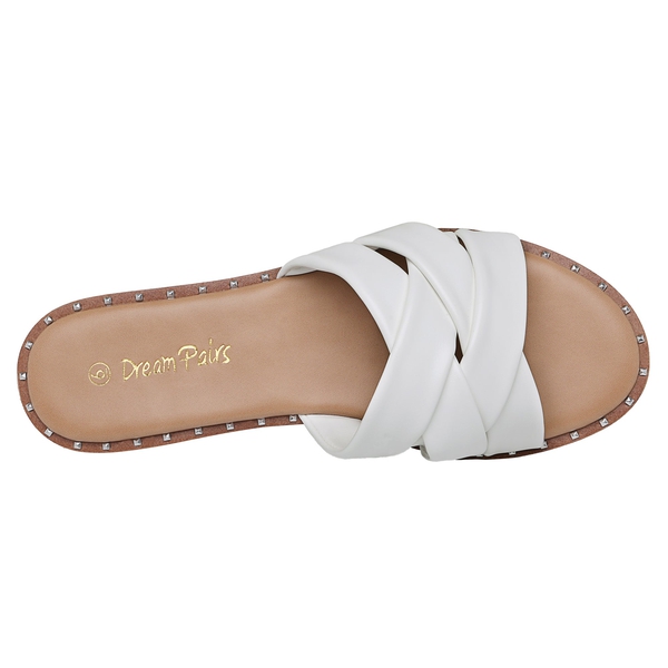 Our women's studded flat slide sandals are here to announce your greatest new adventure. It's time to just take some time out for yourself. A memory foam insole wrapped in fashion and supported by a TPR outsole with incredible stability. This criss-cross design is available in multiple shades. The options are endless and this design is a dazzling addition to any wardrobe.