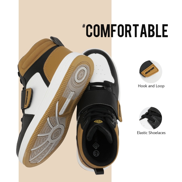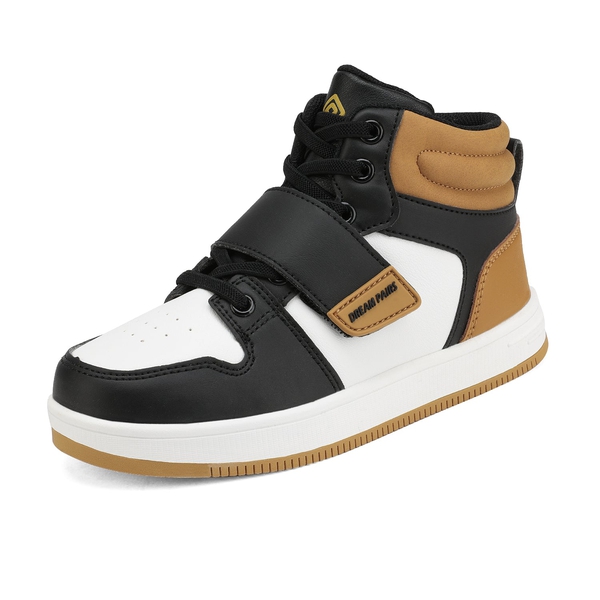 Discover the latest style for your kids. These kids' high-top sneakers with elastic laces and a hook-and-loop strap offer a snug fit. The padded tongue and collar deliver added comfort. In addition, the durable rubber flocking coating outsole allows your kids to play with stability and safety. Your kids will absolutely love these kids' high-top sneakers.