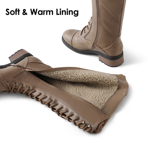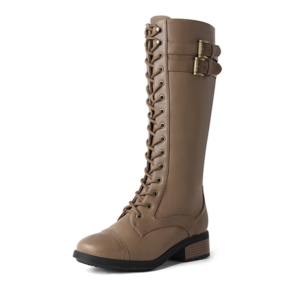 Lace up and style these knee-high riding boots for women with your favorite pair of jeans. Stand tall in a classic riding boot style curated for women who know exactly what they want and need. Adjustable buckles and a side zipper to easily slip on and off. These boots are charming and audacious. Grab a pair for yourself today.