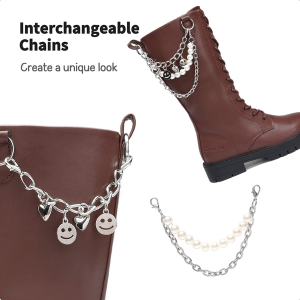 Moto-inspired style and equipped with four interchangeable chains that can be mixed and matched. These girls' riding boots infuse an edgy vibe into their fall and early winter wardrobe. Featuring an easily maintainable upper, a reliable grippy outsole, and a convenient on-and-off design, these boots guarantee durability and long-lasting wear.