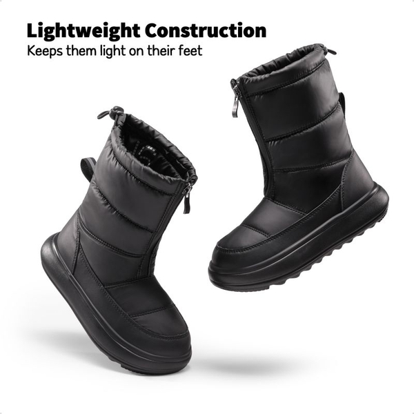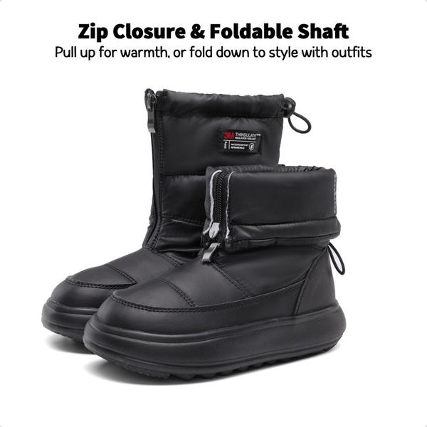 These boots feature a water-resistant upper and 3M insulation lining to keep your little one cozy and dry. Their versatile foldable boot shaft design lets kids switch styles, while the lightweight build ensures unrestricted movement during winter activities. The combination of a zipper and adjustable drawstring makes wearing these boots a breeze. Let the winter adventures begin with these functional boots!