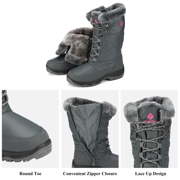 Look good and feel cozy in these Dream Pairs women's Fur Mid Calf Snow Boots. These cold-weather mid-calf winter boots feature 200g Thermolite insulation rated to -25F. Featuring a zipper closure for easy taking off and putting on. The heel measures approximately 1.75".