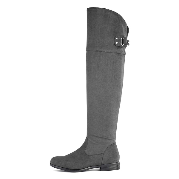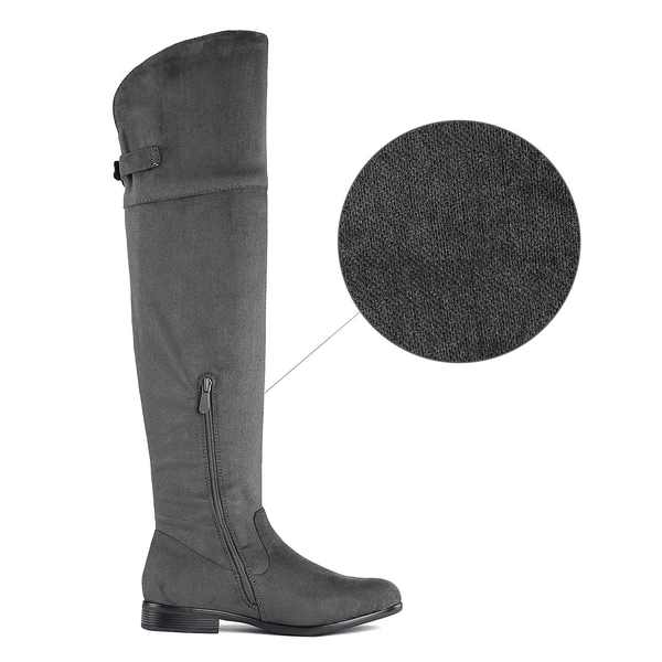 Step up your look in these Dream Pairs women's over the knee riding boots. Featuring a 1" heel and an over the knee design, these boots guarantee a stylish look. Created with a TPR outsole, these over the knee-high boots deliver greater traction when you're running errands. Enjoy extra cushioning with a supportive insole, and more comfort with a faux fur lining. Pair with your wardrobe and dress up, or down.