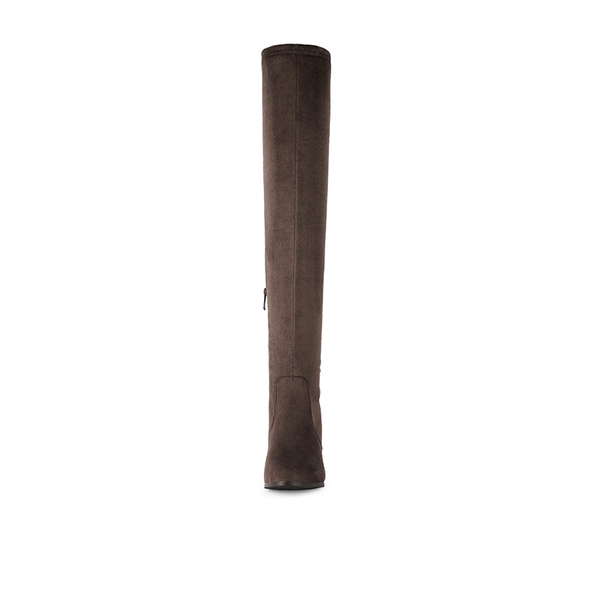 Good news, you’ve found it. The perfect mid-block heel over-the-knee boots for your closet. Let’s tie it all together like the drawstring knot that keeps our mid-heel thigh-high boots from slouching. Enjoy a safe faux fur suede that’s smooth to the touch. Keep it precise and to the point in black with a simple white t-shirt.