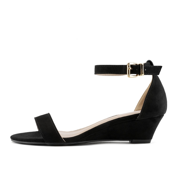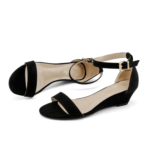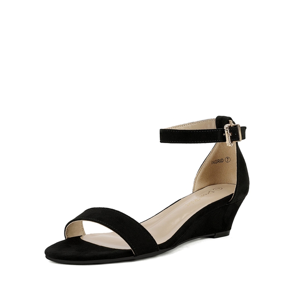 Elegance and sophistication are infused in the vegan suede of these comfortable low wedge sandals. We’re teaming up with you to bring black class and control. Across the board, you’ll find beauty and brains embedded in these ankle strap low wedge sandals. Steadiness and complete control are delivered with our higher-quality TPR outsole but our favorite part of these beauties is the extra padding injected in the insole for supreme comfort and grace.