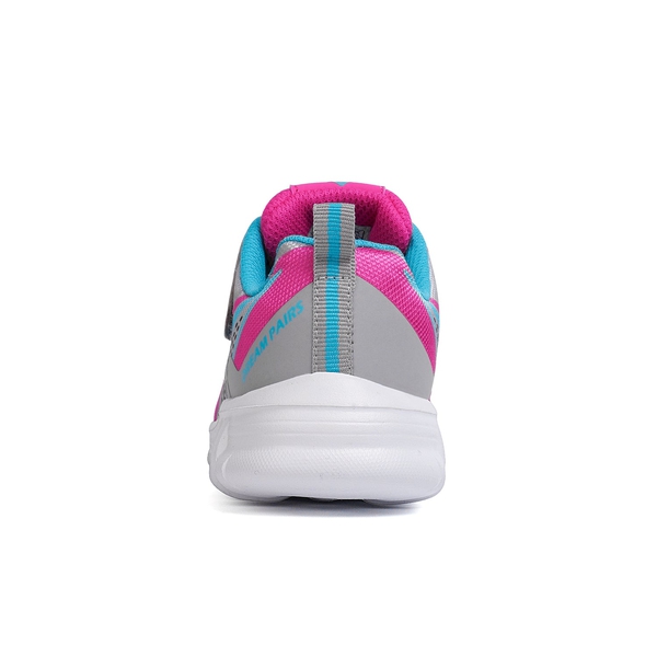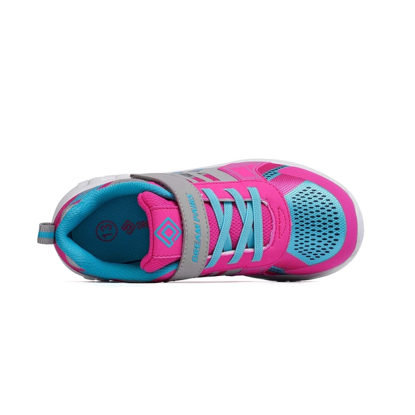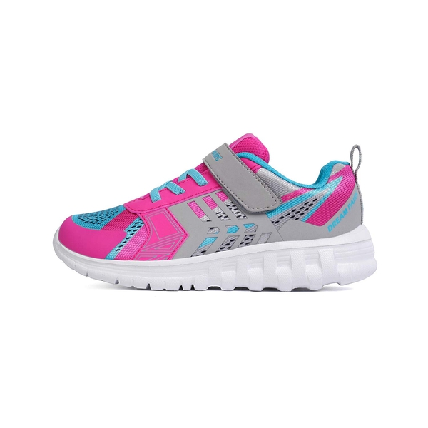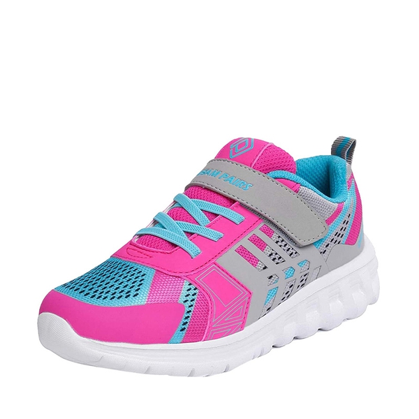 Laces with a security strap and endless color options. These kids' athletic running sneakers contain a fabric knit upper that's breathable and lightweight. A cushioned sock liner keeps dry and odor-free. The midsole is doing effortless work here by adding more cushion and comfort to your walk.