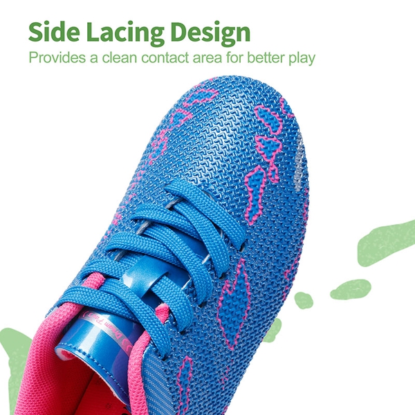 - Side Lacing Design: These kids’ soccer shoes feature a side lace up system that provides a clean contact area for better play