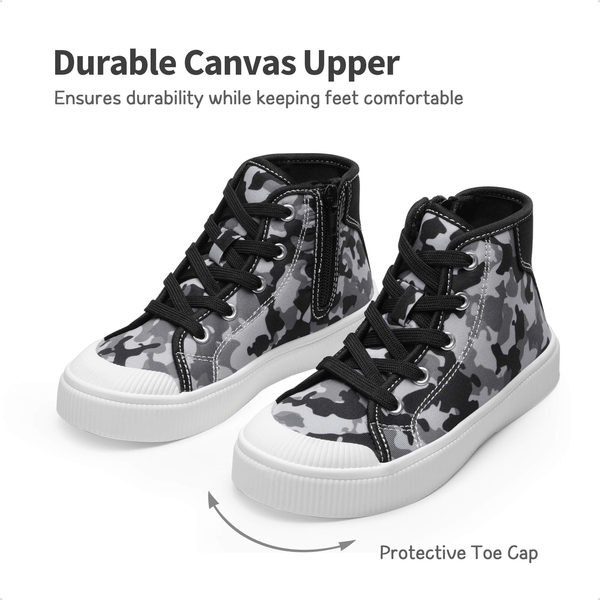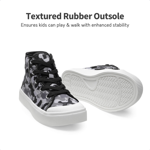 Your kids will love staying on trend in these chic high-top sneakers. With the side zipper design, your kids can effortlessly put them on by themselves. These sneakers also provide your kids with protection during activities, thanks to the protective toe cap that prevents injury and the rubber outsole that prevents slipping.