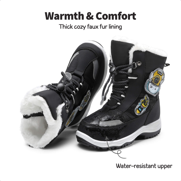Let your little ones embrace winter in style with our kids' winter boots featuring interchangeable patches! Each pair comes with three sets of accessories, allowing kids to personalize their boots. The splashproof upper ensures their feet stay dry on rainy or snowy days, while the insulated lining and specially designed boot shaft keep them warm. Keep them both cozy and fashionable this winter!