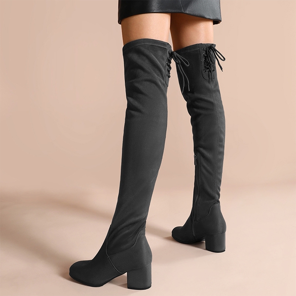 Time to get funky with Dream Pairs chunky heel thigh high boots! With a classic round-toe and a 2-inch heels, these thigh-high boots help show off all the best parts of you. Everyone will want a pair wherever they see you go. The TPR rubber outsole is durable, providing a slip resistant time and the shoelace design prevents the boots from slouching at all times. The boots come in all types of colors including black, grey, khaki and more to match any outfit you may have. This is an ideal shoe for going on dates, going to the store, or going to a big party!