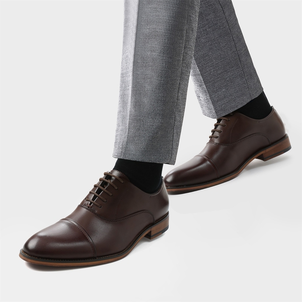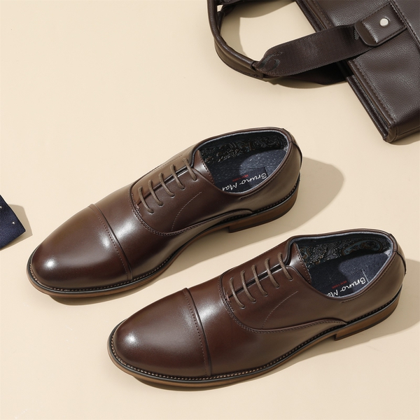 Our leather oxford dress shoes are the best of the best. We know that. Do you? This cool, calm, and collected look can easily be added to any wardrobe and style. They have a classic comfortable feel. A timeless classic choice. Quality stitched detailing brings superior thought-out fashion with the same flexibility and comfort you're accustomed to expecting with Bruno Marc shoes.