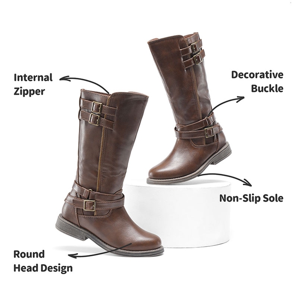 It’s your lucky day. You’ve stumbled on a perfect pair of girl’s knee-high riding boots. It’s time to celebrate with a fabric lining that’s designed to enunciate the best parts of being alive. This comfortable, cozy, and durable feel go above and beyond like every pair of knee-high boots should. Lined with a fabric that's designed to make you feel queenly on your best day. Pick up Girls Knee High Riding Boots that keep everything the way they are supposed to be: upright and supported.