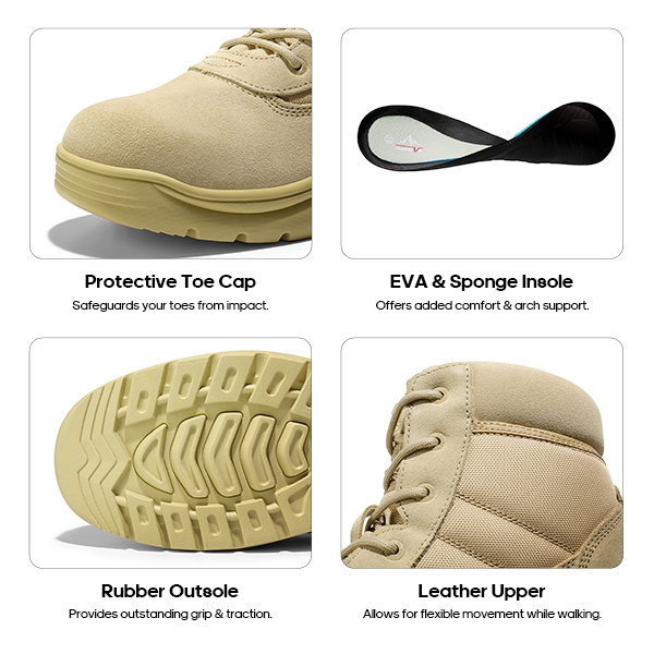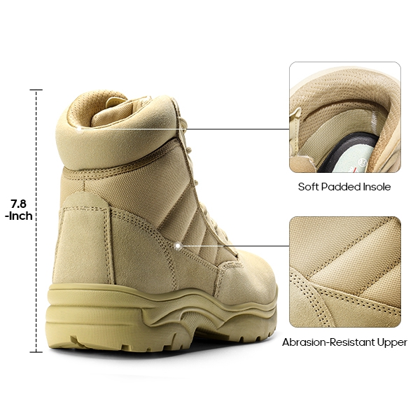 Water-Resistant: The water-resistant upper allows these ankle tactical work boots to stand still in the water for up to four hours straight without getting wet, which is desirable for work, camping, or riding in wet conditions.