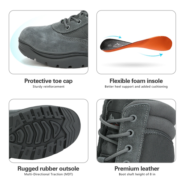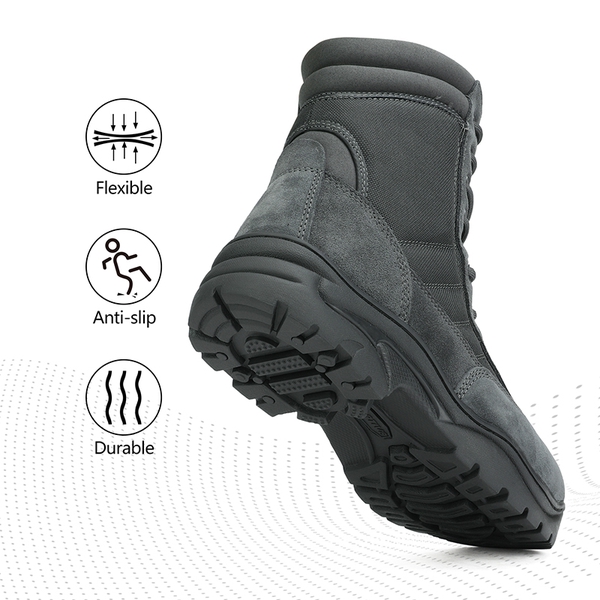 Experience protection and comfort with these NORTIV 8 men's comfortable tactical boots. Featuring ankle protection and a soft padded collar, they offer extra support. The non-slip rubber outsole ensures enhanced traction, while the gusseted tongue keeps debris out. With an easy-to-wear YKK side zipper, they offer effortless style and versatility, making them perfect for various outdoor activities.