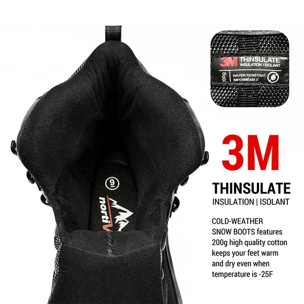 3 warming system: (1) Removable, warm cushion faux fur insole offers all-day support & comfort. (2) 200g high quality 3M Thinsulate keeps your feet warm and dry even when the temperature is -25F. (3) An insulated warm comfy lining provides better protection in bad weather.
