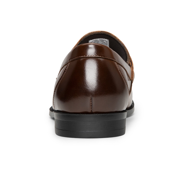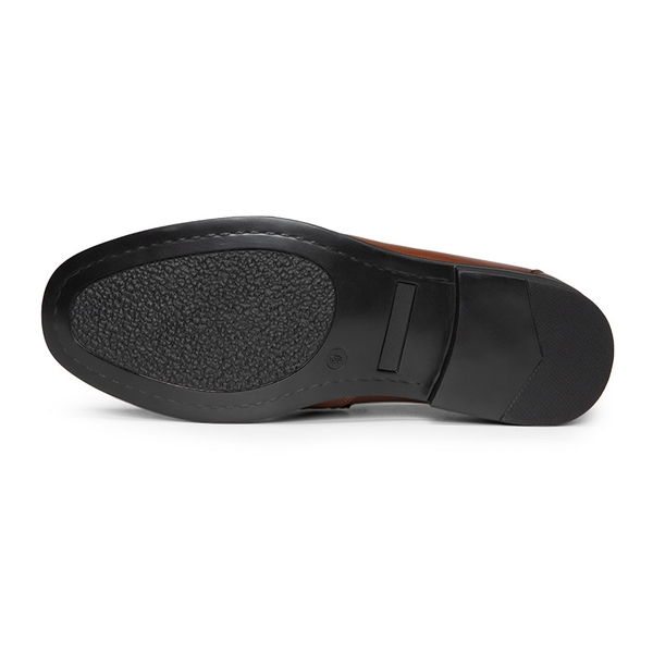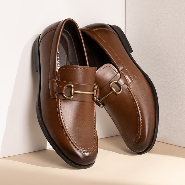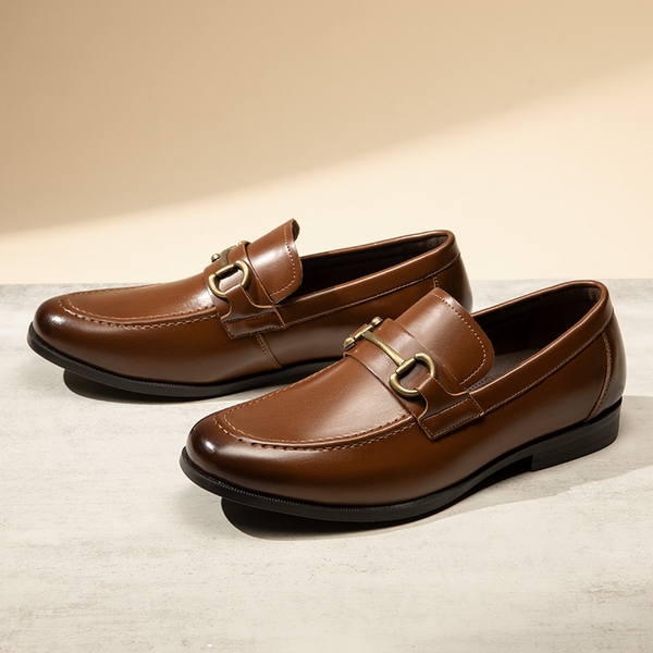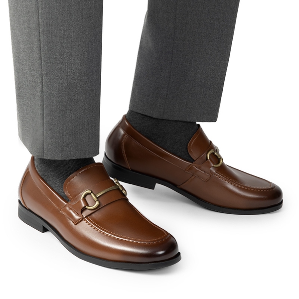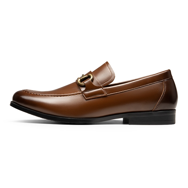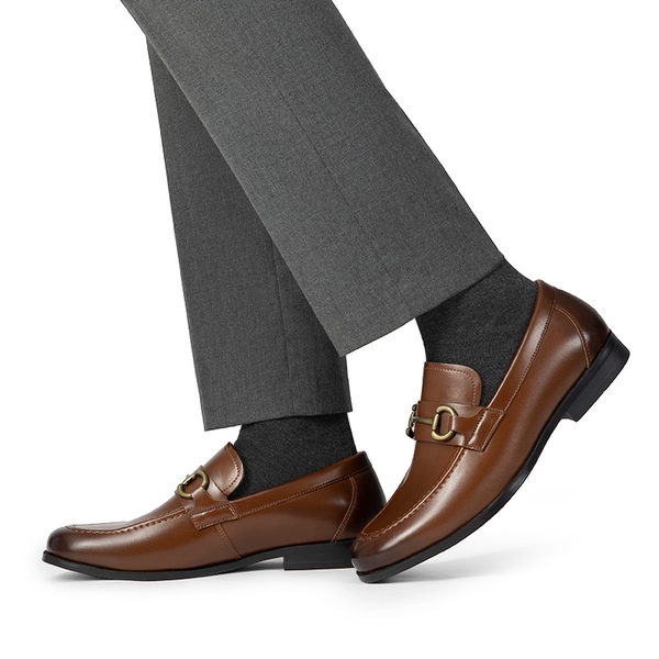 Crafted from smooth vegan leather and adorned with a classic horse-bit accent, these men’s slip-on loafers are the epitome of sophistication and style. Walk confidently on the slip-resistant rubber outsole while enjoying the supportive comfort provided by the soft lining and foam insole. Versatile enough to complement suits and casual outfits, these dress loafers for men are suitable for any occasion that require a polished look.