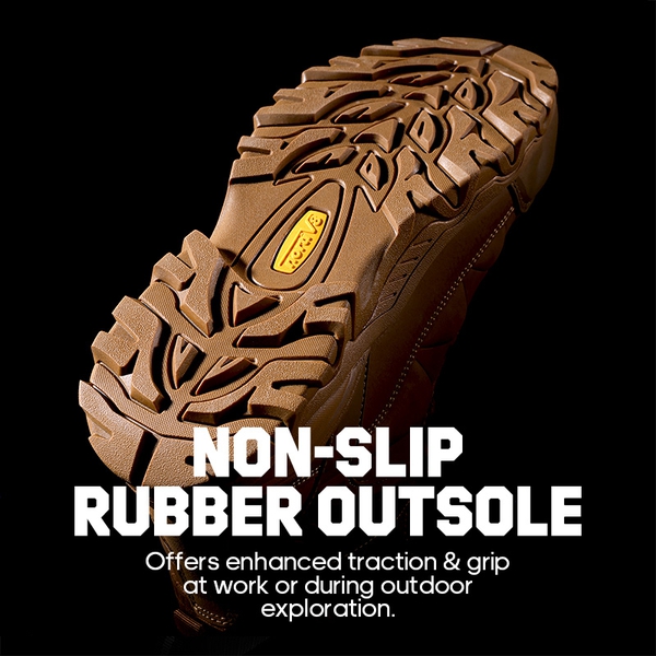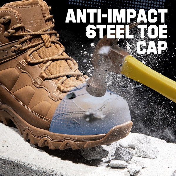 For serious outdoor work, a pair of non-slip steel toe work boots equipped with a protective steel toe is an essential asset in your footwear collection. These men’s non-slip steel-toe boots comply with the ASTM 2413-18 standard, ensuring strong protection. The breathable upper and lining keep your feet cool and allow for airflow, while the highly grippy outsole enhances traction, ensuring you feel confident and secure with every step.