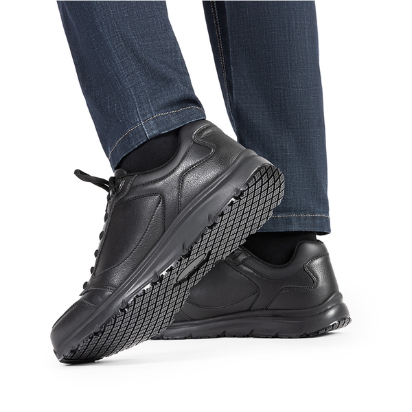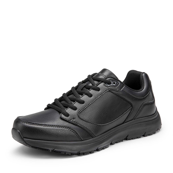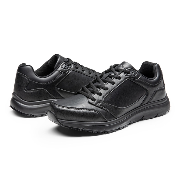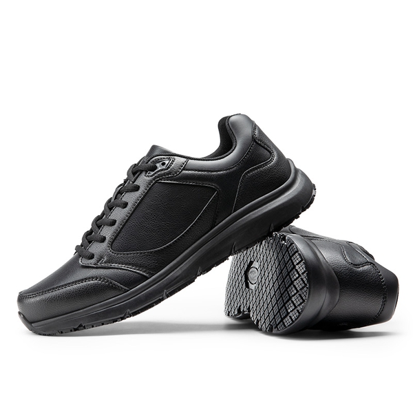 Experience lightweight comfort and slip resistance with the MD midsole and rubber outsole. The high-rebound EVA insole provides enduring support for your feet, and the splash-repellent vegan leather upper makes maintenance easy. These men's vagan leather work sneakers are perfect for restaurant servers, chefs, kitchen staff, and anyone seeking reliable and comfortable work footwear.
