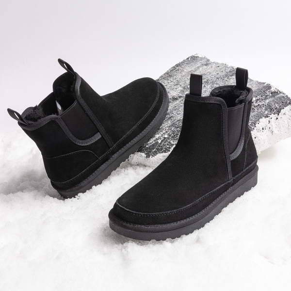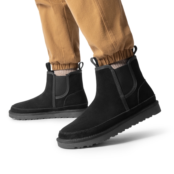 Elevate your winter wardrobe with these men’s suede boots. Crafted with a soft, luxurious suede upper and plush textile lining, these boots provide breathability and toasty comfort. The textile insole absorbs shock for cushioned support, and the lightweight TPR outsole offers a secure grip on different surfaces. With a versatile Chelsea design and elastic gores for easy wear and removal, these boots are perfect for winter.