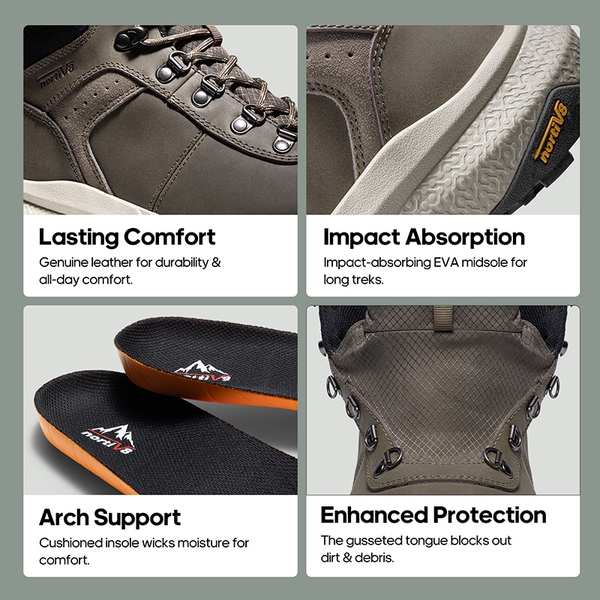 With comfort and durability in mind, these trekking boots for men are crafted with a comfortable upper that provides 4-hour static waterproofing, a resilient insole, a cushioning midsole, and an anti-slip outsole, completed with a gusseted tongue to keep out dirt or debris. Perfect for city strolls, hiking, work and exploration.