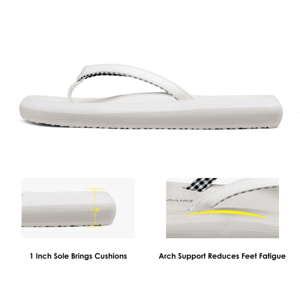 Finish off your casual look in style. These women's arch support flip flops cushion each step with a soft footbed. The non-slip rubber outsole provides excellent traction. These lightweight and comfortable thong sandals are the perfect options for daily strolls, beach, swimming, or showering.