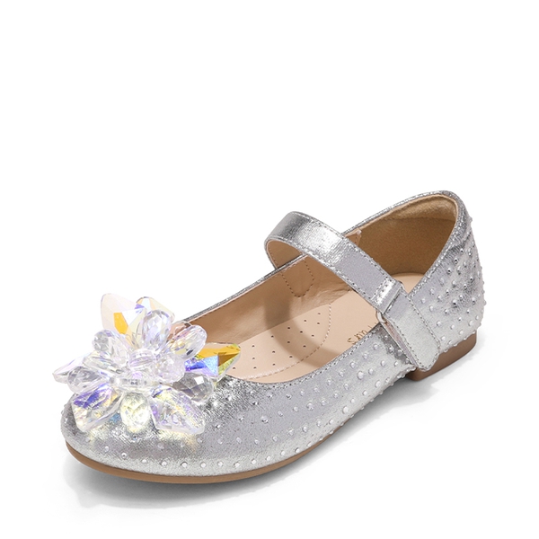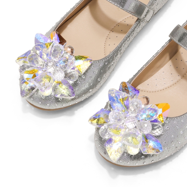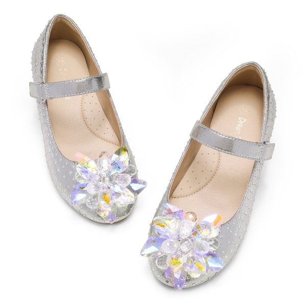 Put more shimmer in each step. Out girls bow glitter flats stand out as positively shining stars designed with sparkly multi-petal flower rhinestones and intentional attention to detail. Our girl's princess flats shoes are the belle of the ball. The soft faux sheepskin lining delivers superior comfort and the anti-slip TPR adds a dazzling splash of extra protection. Available in multiple colors for added options and thoughts