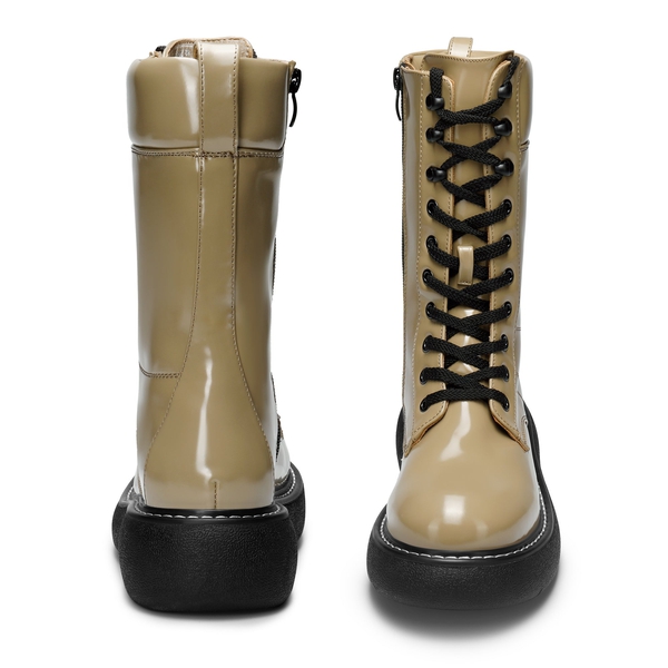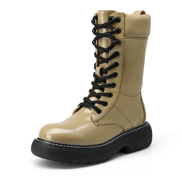 Show some attitude in these Dream Pairs women's mid-calf lace-up combat boots. A smooth and sleek PU leather upper ensures these boots are effortless to clean up. A chunky heel provides superior resistance to slips, while a latex footbed keeps feet feeling comfortable. Pair with your favorite jeans for a casual and chic look.