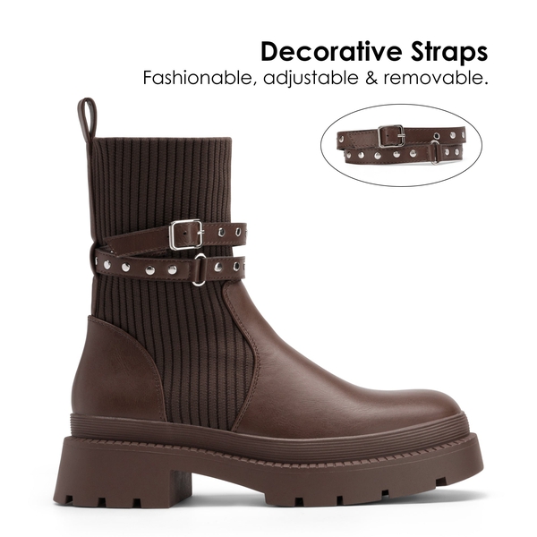 Shine in these Dream Pairs lug sole platform booties. A chunky TPR lug sole is fashionable and slip-resistant, mixing the perfect blend of style and practicality. A thick insole is covered with PU leather, providing all-day support and comfort. Pair with jeans, skinny dresses, or overalls.