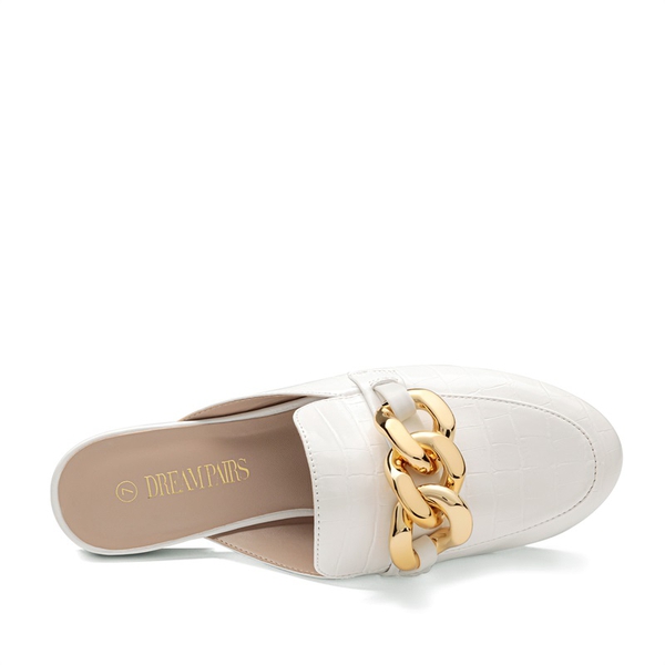 Show off your style with these Dream Pairs women's closed toe mules. A heel-less design makes slipping on, and taking off totally effortless. A round toe ensures a classic look, while a chunky gold chain adds a touch of chic. Perfect for both casual and formal wear – from dinner, to seeing friends, to the office.