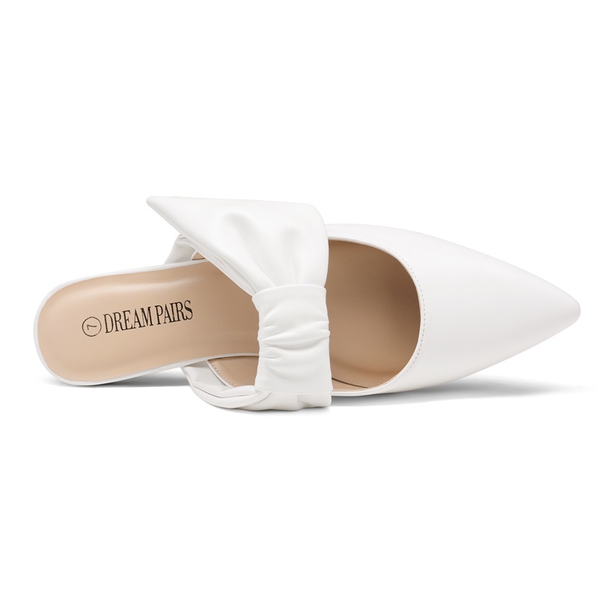 Finish your ensemble with these Dream Pairs women's bow slip on mules. A pointed toe adds a classic design finish, transitioning effortlessly from day to night. A TPR outsole gives you a surer footing, while a latex insole provides extra cushioning in each step. Pair effortlessly with formal or casual attire – everything from denim, to shorts, to dresses.