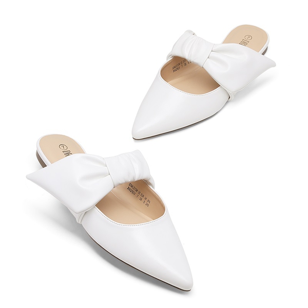 - Decorative Bow: These pointed toe mules have a large bow accent which is sophisticated & elegant for a chic look