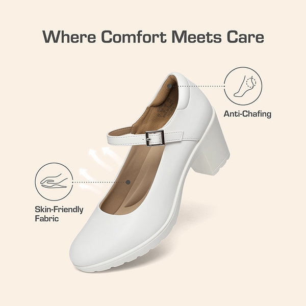 Sharpen your look with these Dream Pairs mary jane pumps. Enjoy a classic style via an adjustable ankle strap, round toe, and smooth PU leather upper. These women's round toe mary jane pumps are created with added arch support, a tri-layer insole, and enhanced foot protection. Meanwhile, a TPR outsole provides greater traction & wear resistance.