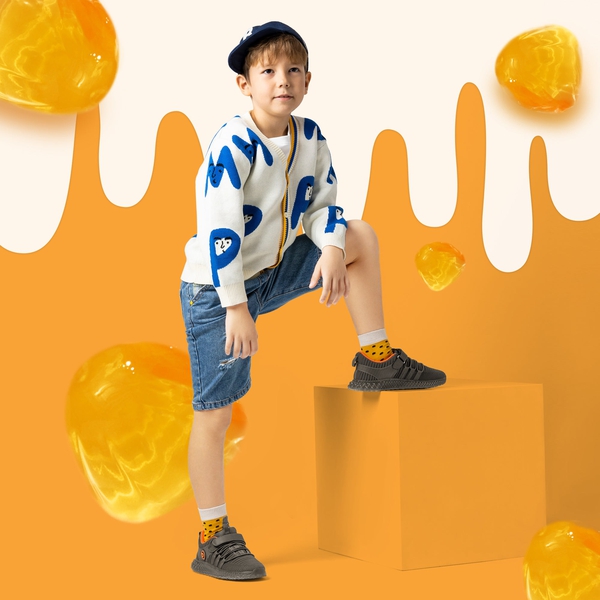 Designed with the contrasted PVC outsole, these fashionable kids sneakers make your child the focus of the crowd.