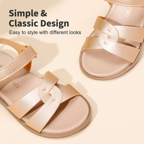 Let your little one sparkle in these Dream Pairs girls' open-toe flat sandals. A TPR outsole is designed for traction and durability, while an adjustable hook and loop strap delivers a customized and comfortable fit. Perfect to pair with a wide variety of outfits for a wide variety of events.