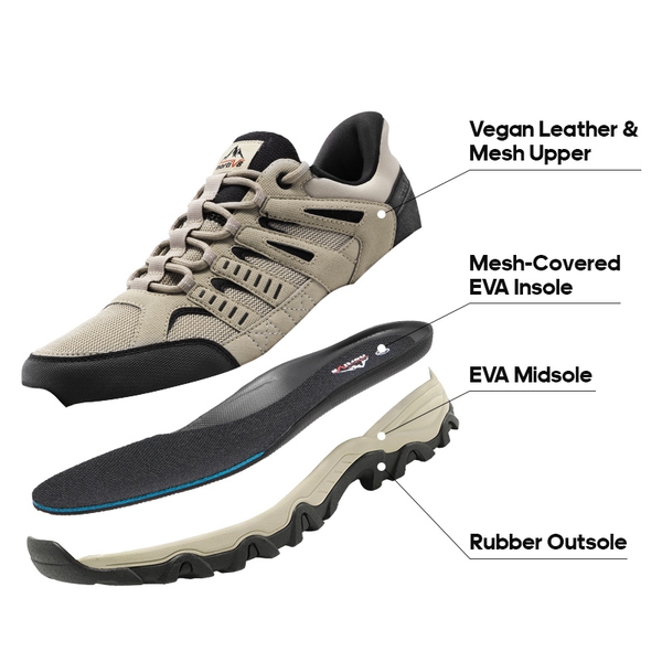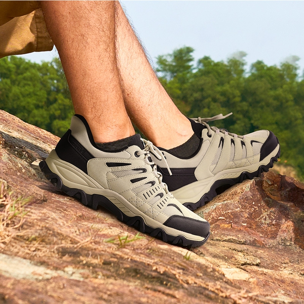 Embark on a journey of exploration. Built with a reinforced toe cap and a supportive heel counter to withstand the rigors of the trails, these hiking shoes for men are designed for adventure seekers and nature lovers. The durable build and lugged rubber outsole allow you to bravely explore the outdoors. These men’s hiking shoes are reliable for hiking, climbing, camping, and other indoor and outdoor activities.