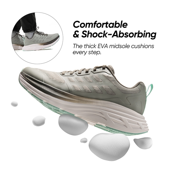 All-Day Comfort: The high-bounce EVA midsole absorbs shock up to 46 joules for a soft, cushioned feel that reduces the impact on your knees.