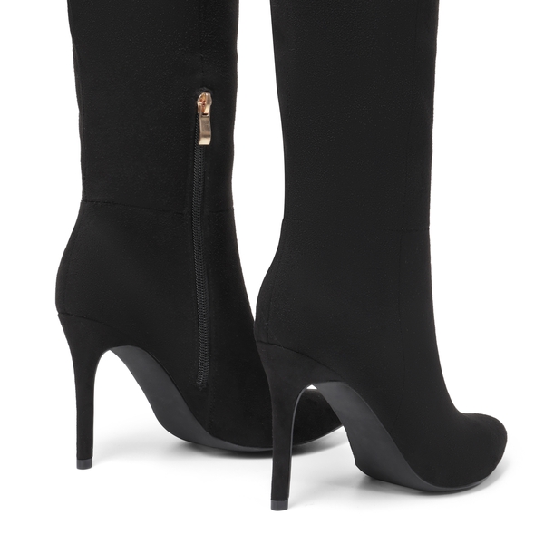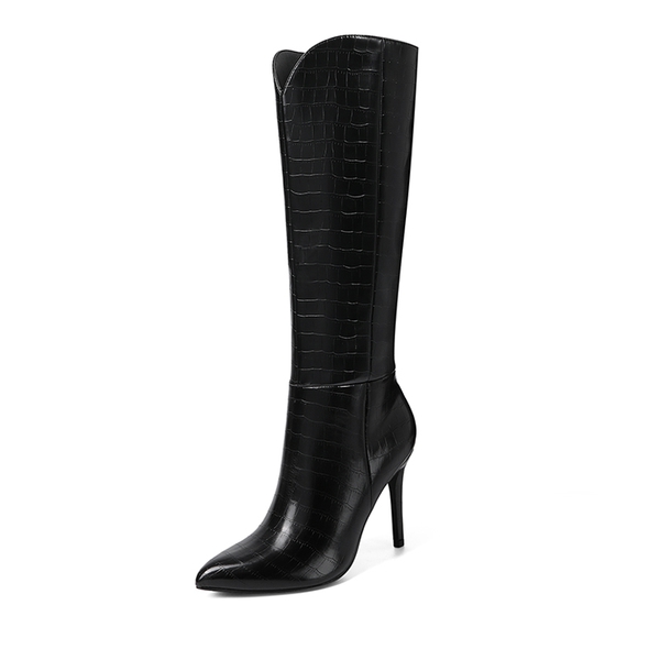 Lift your look with these women's Stiletto Knee High Boots from Dream Pairs. A 3.8-inch heel provides a boost of height and a large dose of style. These heeled boots are easy to clean and with a crocodile print PU upper. Slip in and out effortlessly with a side zipper, while a latex insole adds extra support and comfort to your steps. Pair with jeans, skirts, coats, and beyond.