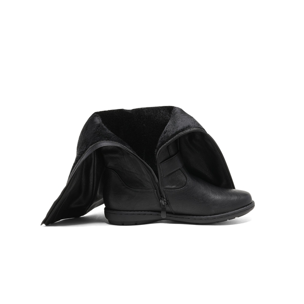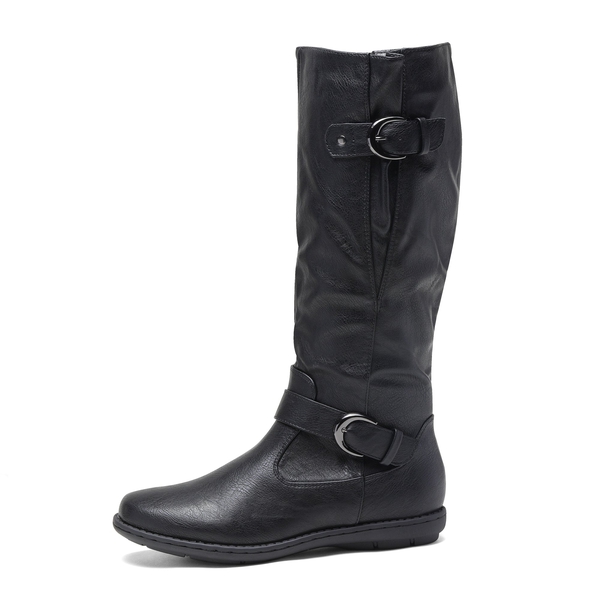 Step up your winter footwear with these Dream Pairs knee-high winter boots for women. A rubber TPR outsole keeps you walking steadily through cold terrain, while a side zipper makes putting on and taking off an easy affair. Heel measures 0.75" and platform reaches approx 0.25".