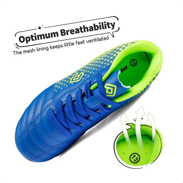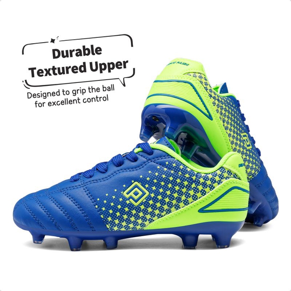 Equip your kids with a pair of soccer shoes in the playground. These kids' football soccer cleats feature soft synthetic material upper for maximum durability and ball control. The soft and breathable textile linings and adjustable lace-up closure offer optimum comfort in a secure fit. Configured with rubber molded cleats for superior grip on the pitch. Choose the best football cleats for your kids.