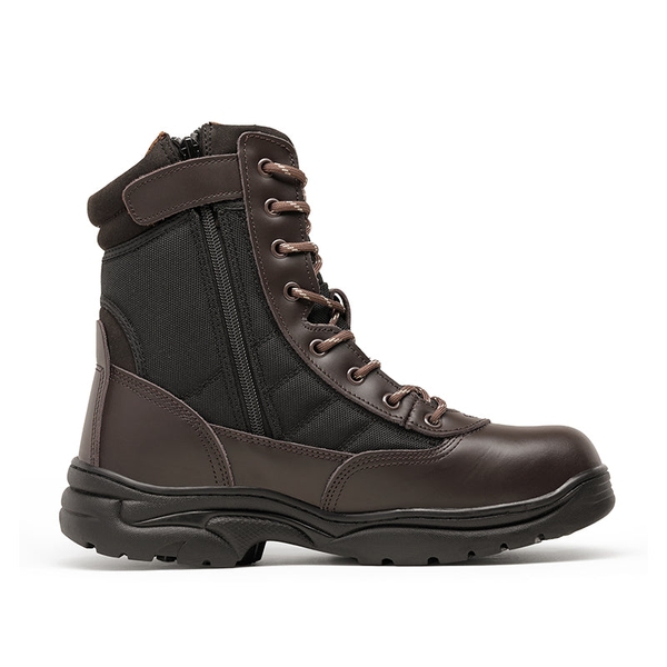 When it comes to tough work, safety comes first. Our steel toe work boots get that. We get the importance of slip-resistant and flexible breathable fabric so you have room to move again. Make protection your top priority with TROOPER-STEEL. Slip into your routine with extra care. Sneaker-like comfort with steel force protection. Tough and dependable. On the clock or the off-the-clock experience superior comfort and care. TROOPER-STEEL steel-toe work boot prioritizes safety and control above all else.