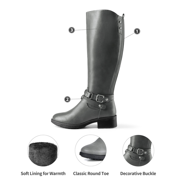 Look great and feel warm in these Dream Pairs women's knee-high fur-lined boots. A rubber TPR outsole provides greater grip across various terrain, while a faux fur lining keeps feet feeling toasty warm. The heel measures approx 1.25" while the platform measures approx 0.5".