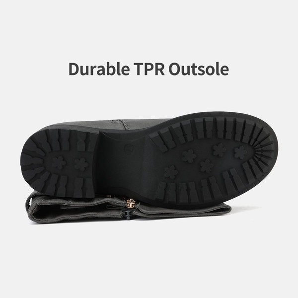 Think about the first time you ever rode a motorcycle. How did it make you feel? Dream Pairs women's wide calf knee-high riding boots give you the exact same feeling with their buckle-strapped look and sleek dark design. It is durable with its tough wear-resistant rubber TPR outsole and its Thermoplastic Elastomers sole. These boots will want you riding all the time!