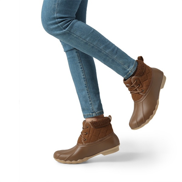 Prepare for winter with these women's sherpa boots from Dream Pairs. Created with a duck boot design for dry toes, while a thick faux fur Sherpa lining adds extra warmth. These sherpa boots are guaranteed to deliver greater grip on slippery terrain, and a lace-up finish makes it easy to find the perfect fit. Pairs effortlessly with winter wardrobes; and ideal for wearing from doing chores to hitting the stores.