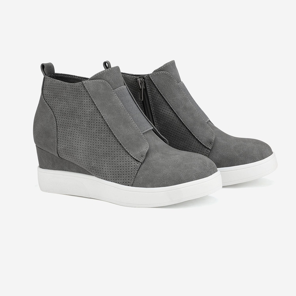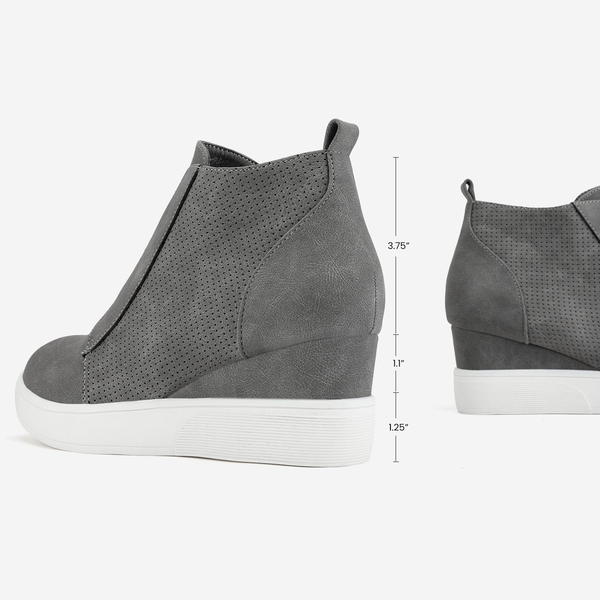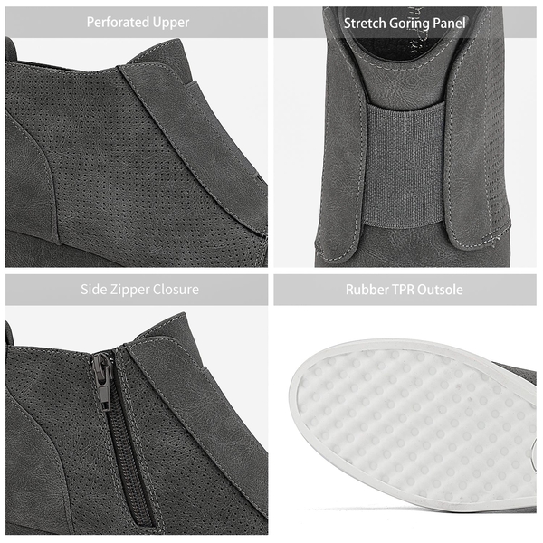 Add a slice of style in these Dream Pairs women's platform wedge booties. Designed with perforated synthetic leather upper and a breathable leather lining. A TPR rubber sole adds extra grip, while a side zipper makes putting on and taking off a breeze. The heel measures approximately 2.35”.